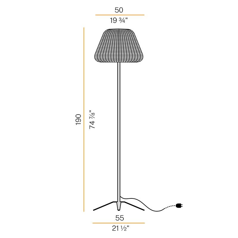 Уличные светильники в подвесной, настольной и напольной версиях, а также со штыком для установки на землю. Абажур из сотканного в ручную искусственного ротанга, основание из алюминия/латуни (настольная, напольная и версия со штыком). Внутри абажура сфера из поликарбоната с лампой. Светильник со штыковым креплением, предназначен для легкого снятия на зиму. Подвесная версия поставляется с оранжевым кабелем питания (версия диаметром 90 см также оснащена стальным тросом). Доступны аксессуары для крепления к стене. Идеально подходит для открытых площадок, террас или освещения сада.