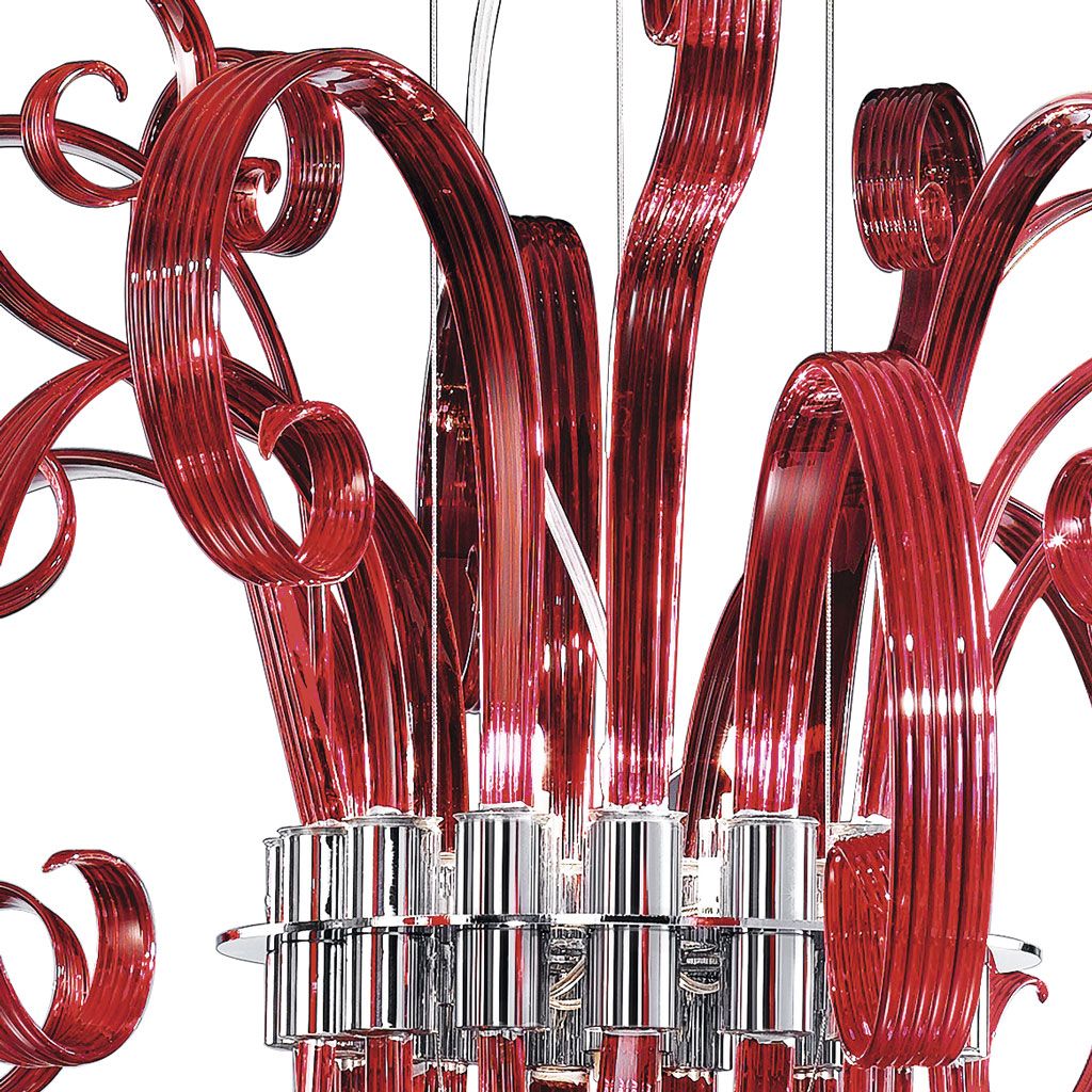 Ciocca - это коллекция с элегантным и уникальным дизайном. Она состоит из металлической конструкции, которая удерживает многочисленные стеклянные “ленты” ручной работы. Опытные стеклодувы вытягивают и текстурируют эти ленты, создавая в целом извилистый и органичный дизайн. Существует множество конфигураций этого изделия, начиная от подвесного светильника и заканчивая настенным светильником.