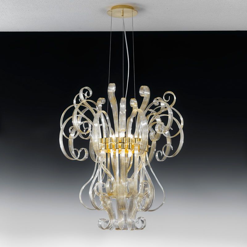 Ciocca - это коллекция с элегантным и уникальным дизайном. Она состоит из металлической конструкции, которая удерживает многочисленные стеклянные “ленты” ручной работы. Опытные стеклодувы вытягивают и текстурируют эти ленты, создавая в целом извилистый и органичный дизайн. Существует множество конфигураций этого изделия, начиная от подвесного светильника и заканчивая настенным светильником.