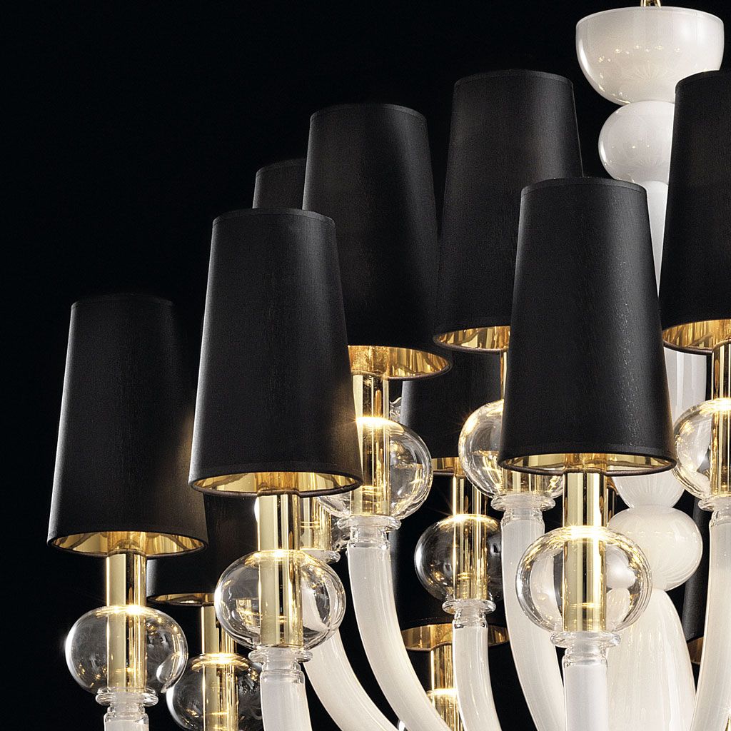 Madmoiselle — это гламурная и стильная люстра, вдохновленная иконами высокой моды. Она считается современной люстрой, которая, с другой стороны, сохраняет традиционные техники стеклодувного дела. Контраст между абажурами и глянцевой отделкой плафонов делает ее оригинальным выбором для шикарного интерьера.