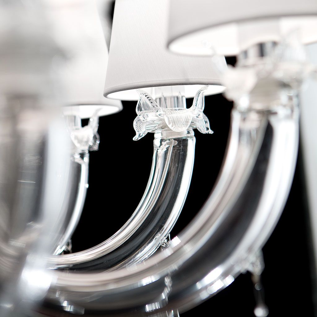 8090 часто называют деконструированной люстрой. Линейная конфигурация этого изделия демонстрирует новую концепцию, которая не только приятна визуально, но и очень функциональна во многих интерьерах. Это изделие выпускается в двух основных формах: тороидальной или линейной. В обоих случаях “модульность” этого изделия делает его настоящим преимуществом, когда требуется индивидуальный размер. Благодаря декоративным деталям, таким как стеклянные капли в стиле “ригадин”, гладкие подлокотники и эксклюзивный стеклянный элемент ручной работы под абажурами, это изделие является изысканным вариантом для интерьера в стиле середины века.