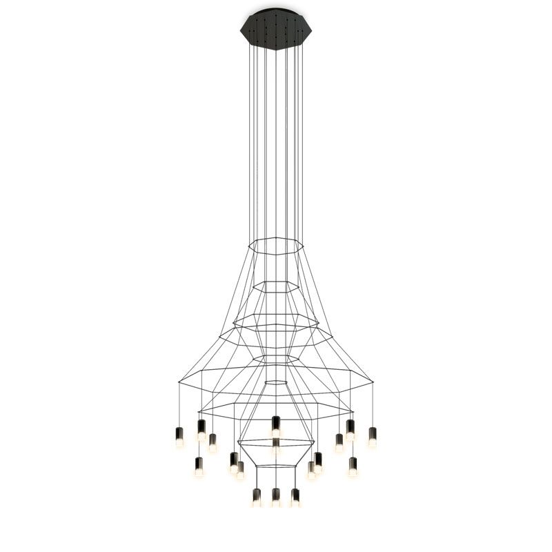 Подвесные светильники Wireflow 3D - это система подвесных светильников, разработанная Arik Levy. Коллекция Wireflow 3D - это новая интерпретация и переосмысление классической люстры. Опорная конструкция для светильника Wireflow 3D построена с использованием черного электрического кабеля и светодиодных источников света мощностью 4,5 Вт. Светильник характеризуется именно этими материалами, которые определяют коллекцию. Электрические кабели коллекции Wireflow отображают трехмерную геометрию, которая, несмотря на их большой размер, создает ощущение прозрачности, которое определяет захватывающее графическое ощущение этого светильника. Коллекция Wireflow 3D доступна с 15, 42 и 43 источниками света.
