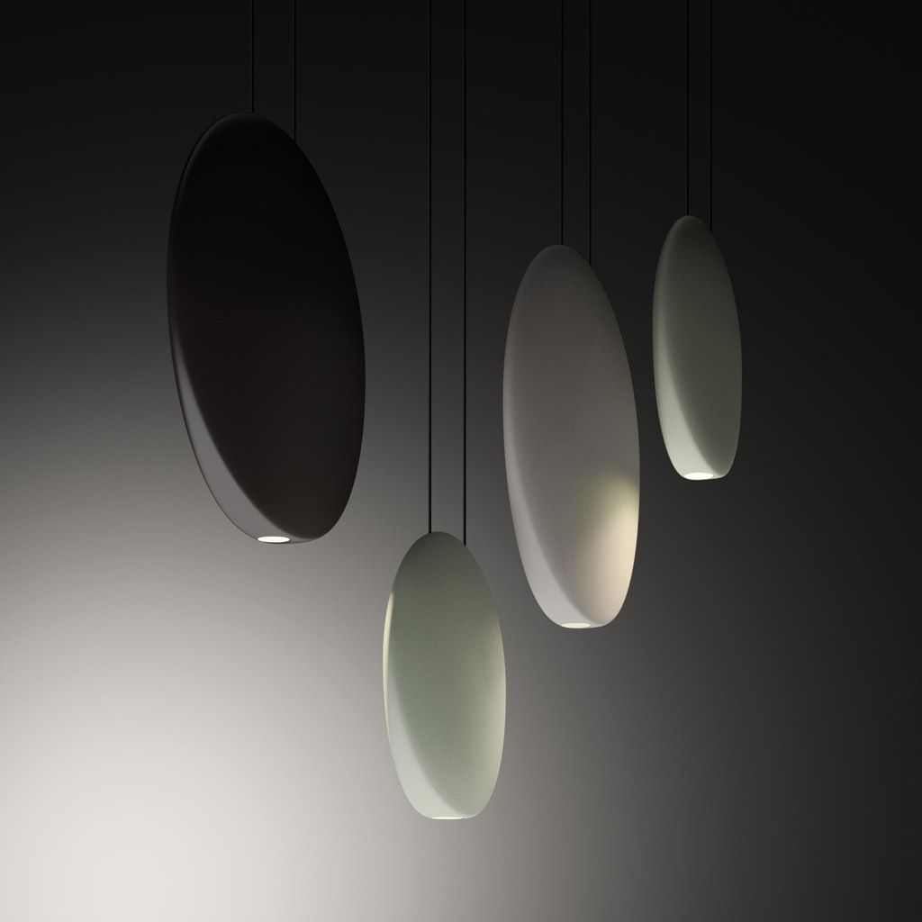 Коллекция подвесных светильников Cosmos разработана дизайнерами Lievore, Altherr, Molina и состоит из подвесных световых скоплений сплющенных форм разных размеров, которые создают оптическую иллюзию висящих сфер, которые, кажется, плавают в воздухе.