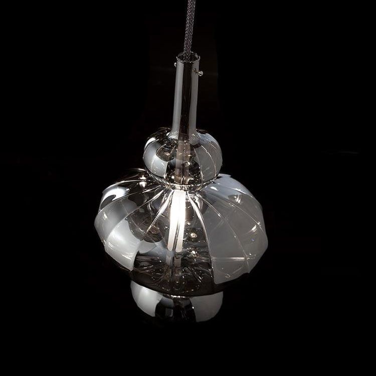 Формы из выдувного стекла, прозрачные или матовые, подвешенные к металлическим сетчатым трубчатым сеткам, отражают свет в комнате, создавая наводящие на размышления сцены.