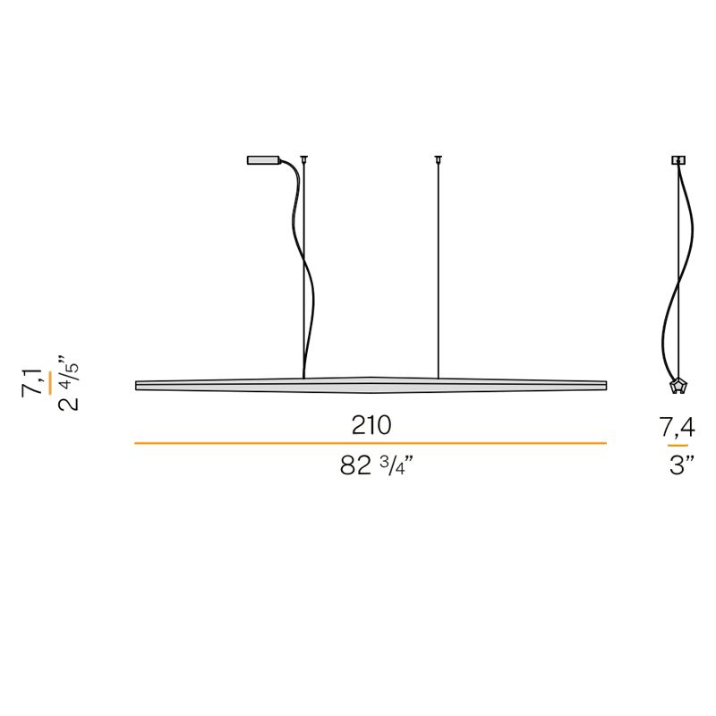 Подвесной и напольный светильник пятиугольной формы из гнутого и резного алюминия. Источник света – светодиодный модуль и ультратонкий драйвер DALI/Push DIM, встроенный в корпус подвесного светильника. Подвесной вариант доступен в двух размерах (120 и 210 см) с направленным вниз светом, идеально подходит для создания композиций. Напольный вариант с основанием из металла, вырезанного лазером, изогнутого и окрашенного. Покрыт полиакриловой краской белого или черного цвета.