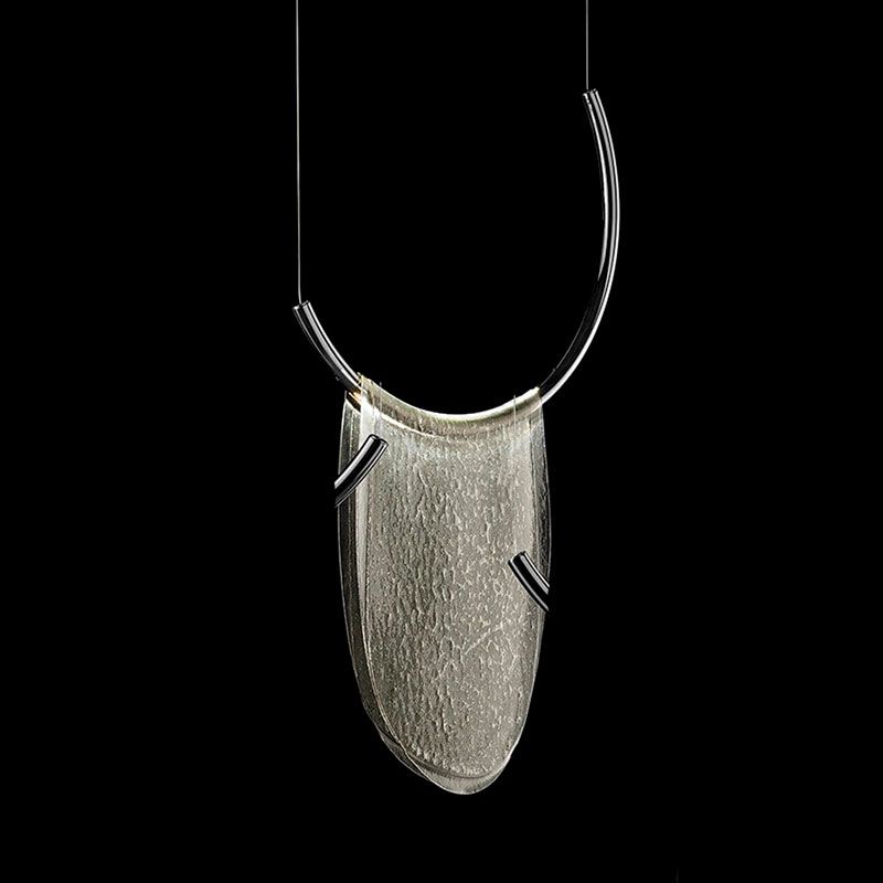 Многослойное стекло словно мягко «стекает», создавая эффект движения и визуальной текучести, напоминающей знаменитые тающие часы. Такая пластика формы придаёт светильнику выразительный художественный характер и делает его акцентным элементом пространства.
