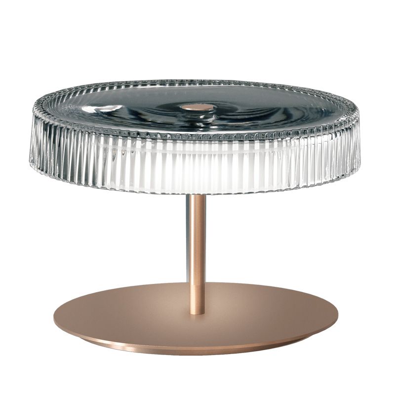 Рельефный хрустальный плафон мягко преломляет свет и создаёт изысканную игру бликов, добавляя интерьеру лёгкую нотку романтики. Металлический каркас выполнен в отделке corten или в матовом оттенке champagne, формируя выразительный контраст между теплотой металла и холодной чистотой хрусталя.