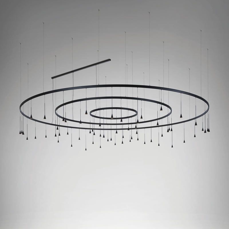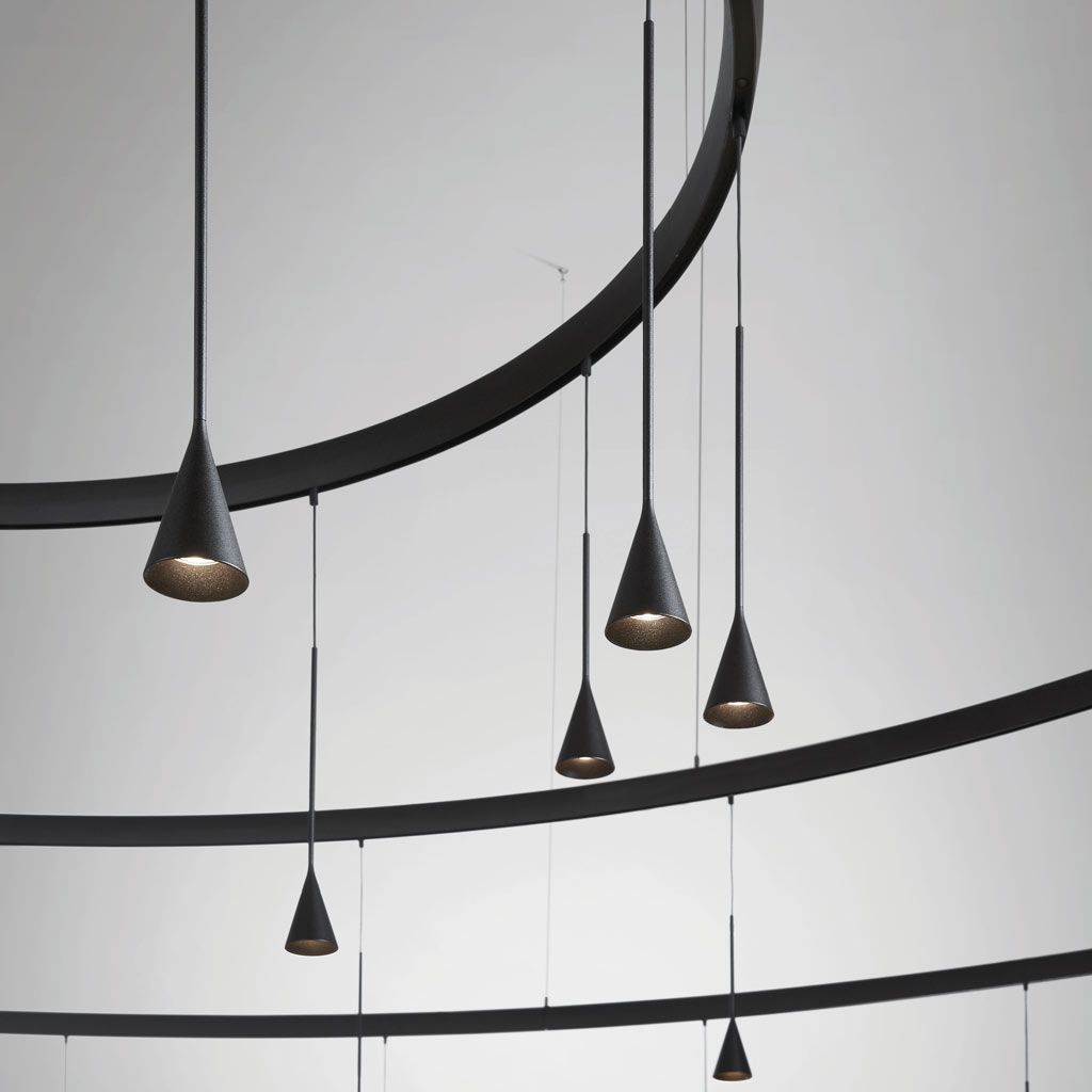 Skybell Plus перенимает эту утонченность и жизнерадостность, сводя концепцию светильника к его сути: колоколу. Очень простой, темный, черный объект, который не стремится быть в центре внимания. Именно эта простота придает изделию большую универсальность. Это пример синтетического и точного дизайна, где функция определяет форму, обеспечивая элегантный и сдержанный результат. Skybell, колокол, — это очень простой и понятный объект, свет, падающий сверху. Это черный колокол, символизирующий вырезание тьмы, как будто мы взяли тьму и вырезали ее, и как из тьмы выходит свет. Именно его простота позволяет нам так много с ним играть.