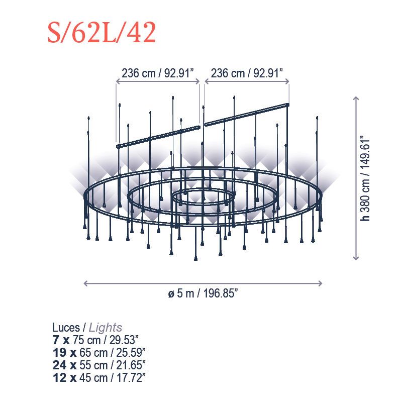 Skybell — это обширная система световых конструкций, разработанная для адаптации к любому типу применения. Их главная характеристика — это создаваемый ими образ: они ненавязчивы и жизнерадостны. Они дарят ощущение фантазии и свободы в своих применениях, поскольку их можно комбинировать в различных вариантах, смешивая 4 размера, чтобы создать более индивидуальную и динамичную концепцию светильника, или же сохранять все «колокола» одинаковой длины, создавая более традиционный образ. В зависимости от предпочтений пользователя, положение «колоколов» можно легко изменить с помощью разъема (джека), который позволяет подключать их к сети одним щелчком. Эта функция подходит для всей коллекции Skybell.