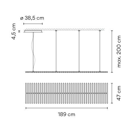Горизонтальные светильники Rhythm разработаны Ариком Леви. Vibia выпускает несколько версий этой коллекции, отличающихся размерами, а также количеством и размером световых стержней. Подвесной светильник Rhythm обеспечивает направленное вниз освещение. Vibia предлагает накладной или встраиваемый вариант крепления. Каждый из световых стержней, входящих в состав горизонтального подвесного светильника Rhythm, оснащен светодиодным источником света.