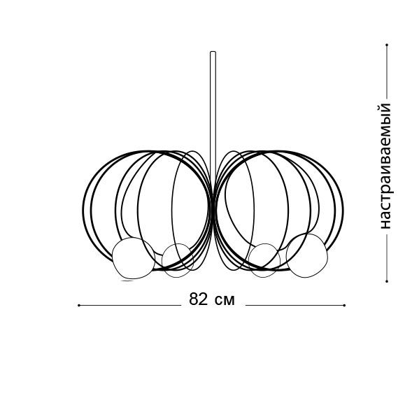 Pulsar Complete - подвесной светильник, состоящий из тридцати латунных колец с источниками света, вставленными внутри четырех стеклянных шаров для рассеянного света и в центральной части конструкции для прямого луча света под люстрой.