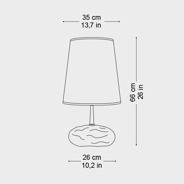 Лампа с массивным художественным стеклянным основанием ручной работы и слегка отполированной латунной конструкцией. Абажур shantung цвета слоновой кости имеет конусообразную форму.
