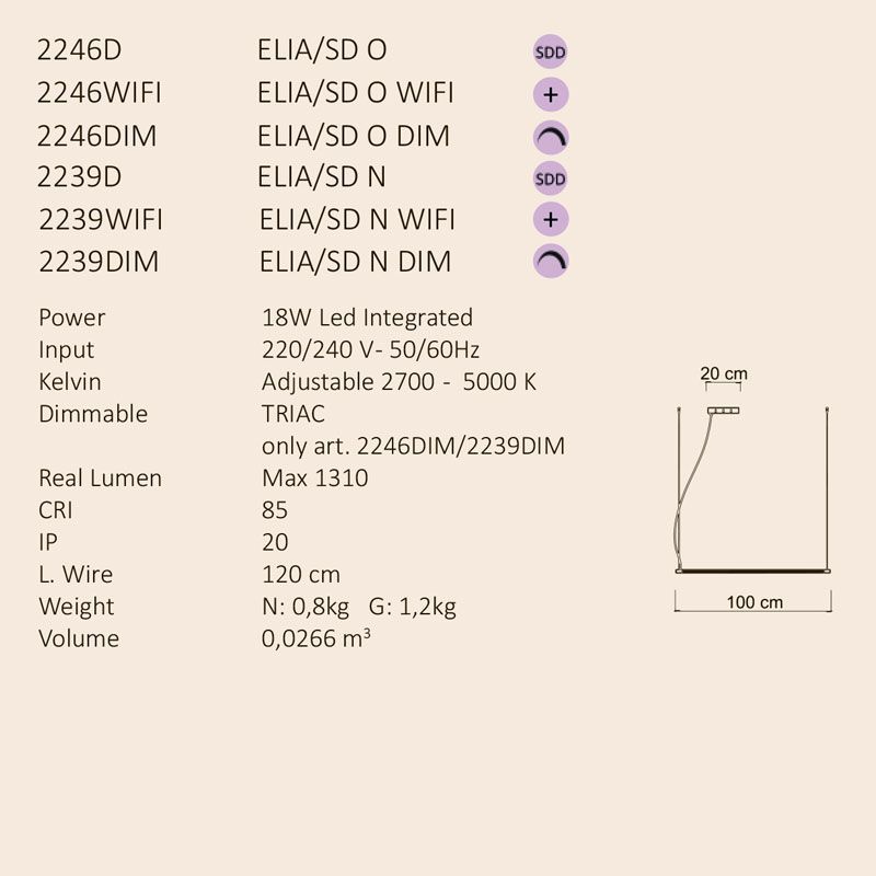 Коллекция светильников Elia сочетает в себе минималистичный и современный дизайн с высокой эффективностью освещения. Выполненные на основе тонкого алюминиевого профиля, доступные в золотом или матово-черном цвете, светильники оснащены высокоэффективной светодиодной лентой CCT. Система SDD позволяет точно регулировать цветовую температуру и интенсивность света. Ассортимент включает подвесные светильники, потолочные светильники, настенные светильники, настольные лампы и напольные лампы, предлагая универсальные решения для любых задач освещения.