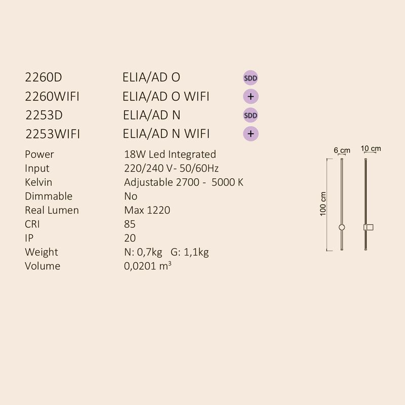 Коллекция светильников Elia сочетает в себе минималистичный и современный дизайн с высокой эффективностью освещения. Выполненные на основе тонкого алюминиевого профиля, доступные в золотом или матово-черном цвете, светильники оснащены высокоэффективной светодиодной лентой CCT. Система SDD позволяет точно регулировать цветовую температуру и интенсивность света. Ассортимент включает подвесные светильники, потолочные светильники, настенные светильники, настольные лампы и напольные лампы, предлагая универсальные решения для любых задач освещения.