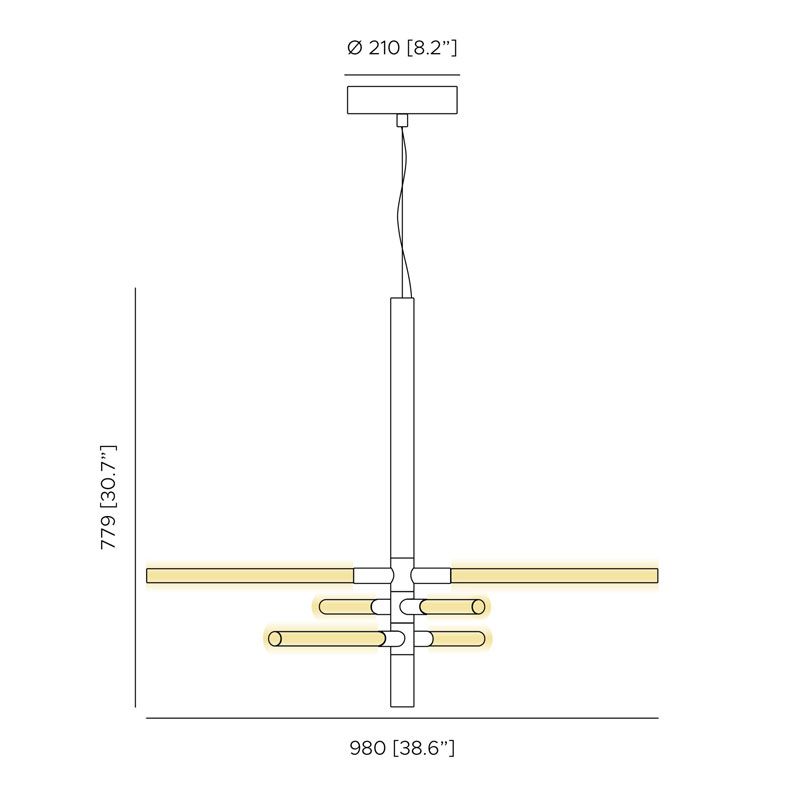 Трубчатые источники света из молочно-белого стекла трех различных размеров были специально разработаны Contardi и оснащены низковольтным цоколем E14 (24 В).