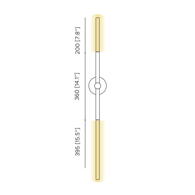 Трубчатые источники света из молочно-белого стекла трех различных размеров были специально разработаны Contardi и оснащены низковольтным цоколем E14 (24 В).