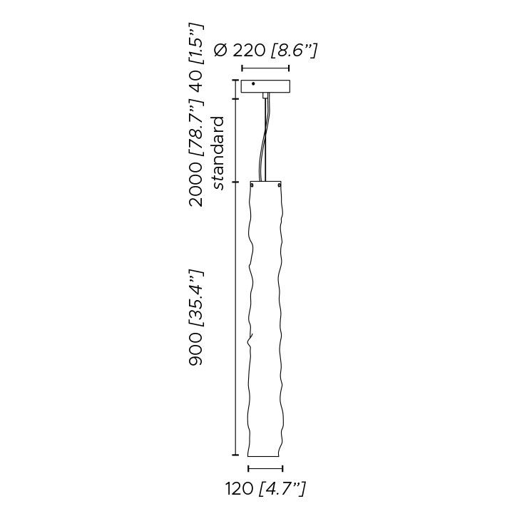 Рссеиватели выполнены из двойного сатинового поликарбоната разной высоты, которые имеют неправильный вид смятых бумажных трубочек, а потолочная розетка выполнена в матово-белом лаковом покрытии. Отличительный мягкий текстильный шнур белого/серого цвета - деталь, выражающая архидекоративный стилистический код бренда, становится соединительным элементом для настольного и напольного вариантов и поддерживает лампу в подвесном варианте.
