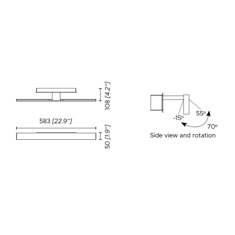 Fly Picture предлагается в вариантах длины (L.60, L.90 и L.180) см. для покрытия больших поверхностей. Подходит для использования в ванной комнате, над зеркалами, имеет степень защиты IP44. Световая панель может быть наклонена от 0 до 70 градусов для индивидуального освещения.