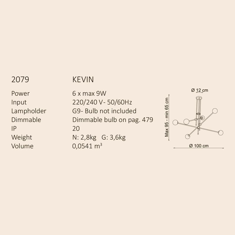 Подвеска из окрашенного в черный цвет металла с рассеивателем из белого стекла и 6 светодиодными лампами G9.