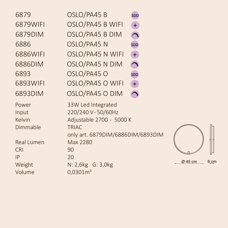 Коллекция Oslo отличается идеальной круглой геометрией, созданной благодаря особой алюминиевой конструкции. Внутри светильника установлена ??светодиодная лента CCT, свет которой направлен к внутренней стороне кольца, создавая мягкий рассеянный свет. Рассеиватель из опалового силикона обеспечивает равномерное освещение, уменьшая блики и оптимизируя визуальный комфорт.