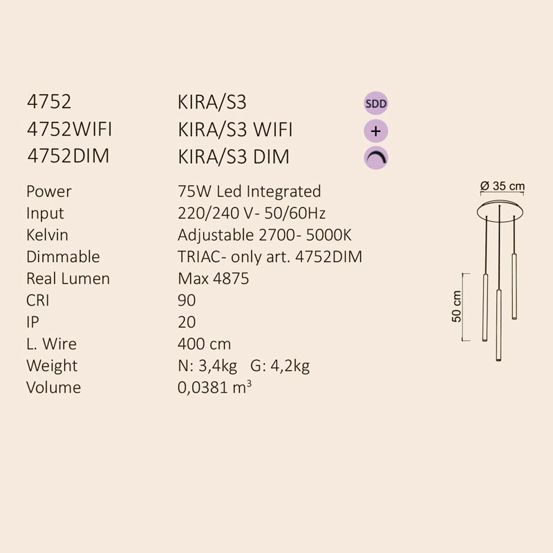 Сочетая дизайн и искусство, Kira представляет собой впечатляющую современную световую скульптуру, которая доминирует в пространстве благодаря своей сильной инсталляционной мощи и колеблющемуся сценическому присутствию с большим эффектом.