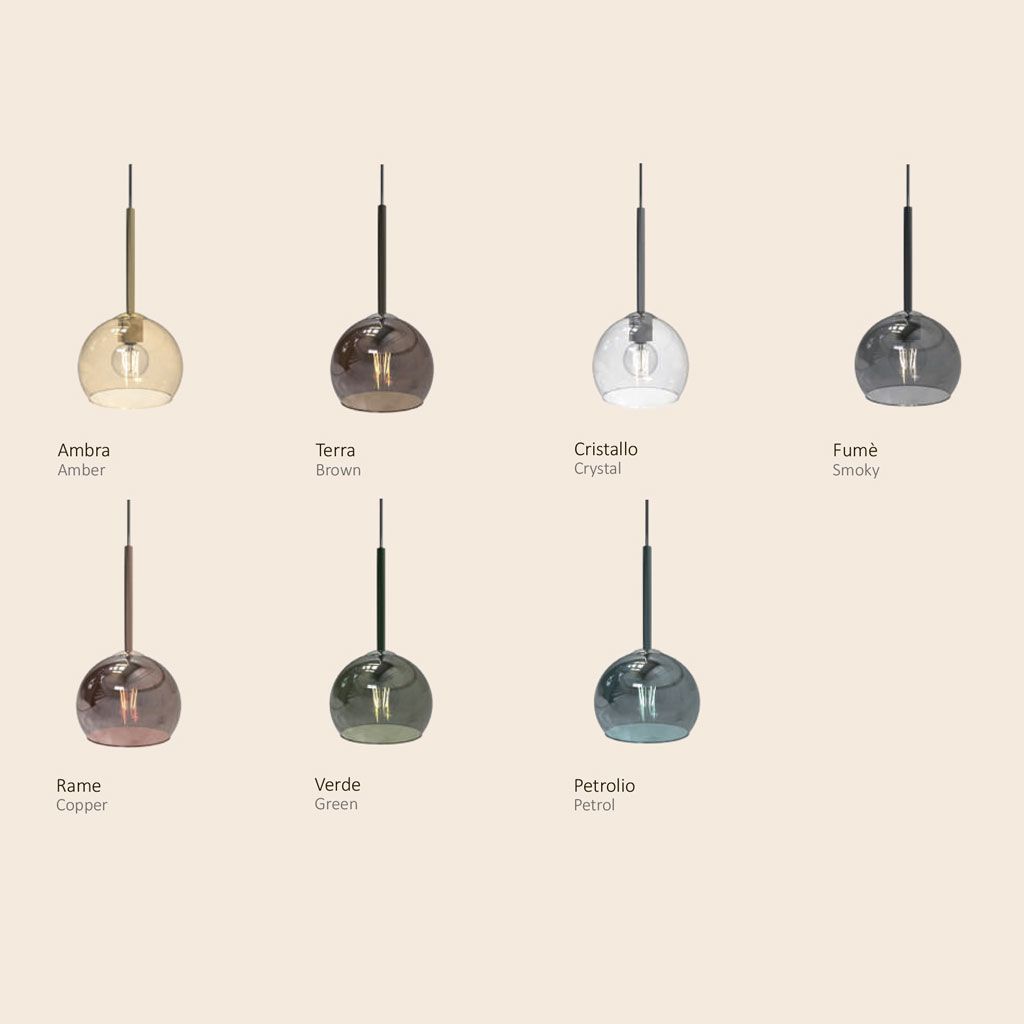 Коллекция Infinity включает подвесные светильники из боросиликатного стекла, изготовленные вручную опытными мастерами-стеклодувами. Они доступны в четырёх размерах. Для отделки используется гальваническое покрытие в бронзовом, дымчатом, медном и нефтяном вариантах, а для янтарного и зелёного — зеркальное покрытие для создания отражающего эффекта. Опорные каркасы, изготовленные из металлов с гармонирующей отделкой, обеспечивают эстетическую целостность и структурную прочность. Прозрачные кабели из ПВХ минимизируют визуальное воздействие, подчёркивая формальную чистоту рассеивателя. Infinity сочетает в себе мастерство исполнения, высококачественное стекло и продуманный дизайн, обеспечивая высокую светоотдачу.
