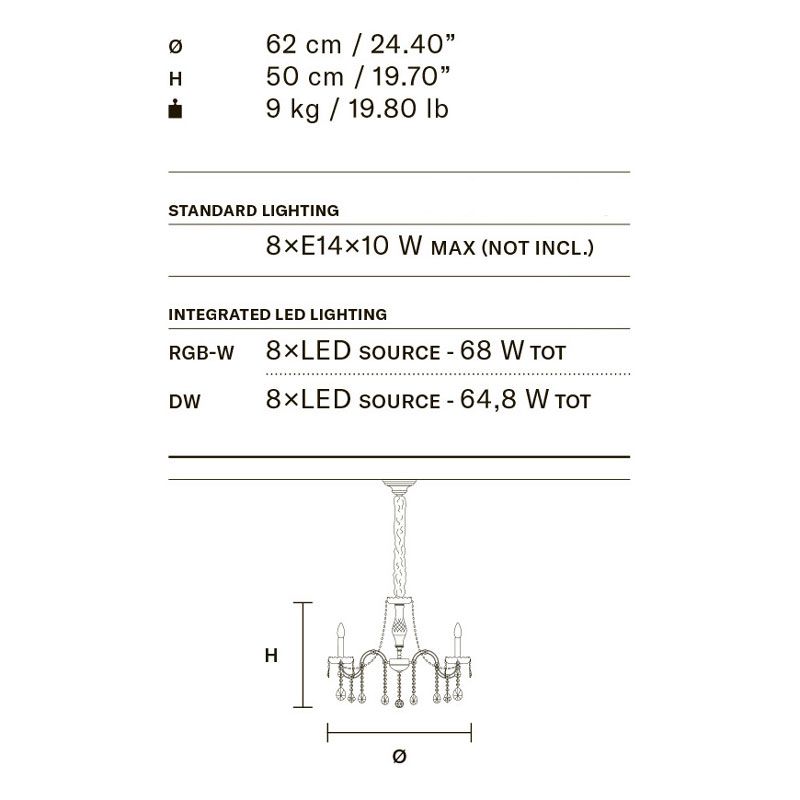 Древний режим - это тенденция, выбранная для Aqaba, произведения искусства, сотканного из света и отличающегося неоспоримой элегантностью и великолепием. Благодаря хрустальным гирляндам Aqaba напоминает о венецианском великолепии эпохи, которой восхищались во всем мире.