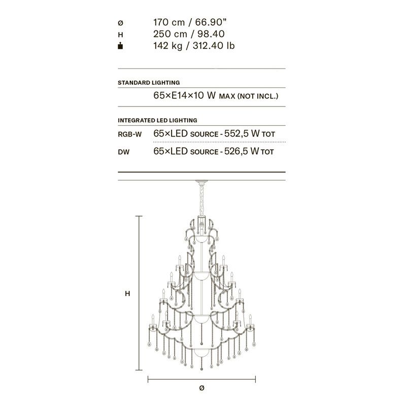 Древний режим - это тенденция, выбранная для Aqaba, произведения искусства, сотканного из света и отличающегося неоспоримой элегантностью и великолепием. Благодаря хрустальным гирляндам Aqaba напоминает о венецианском великолепии эпохи, которой восхищались во всем мире.
