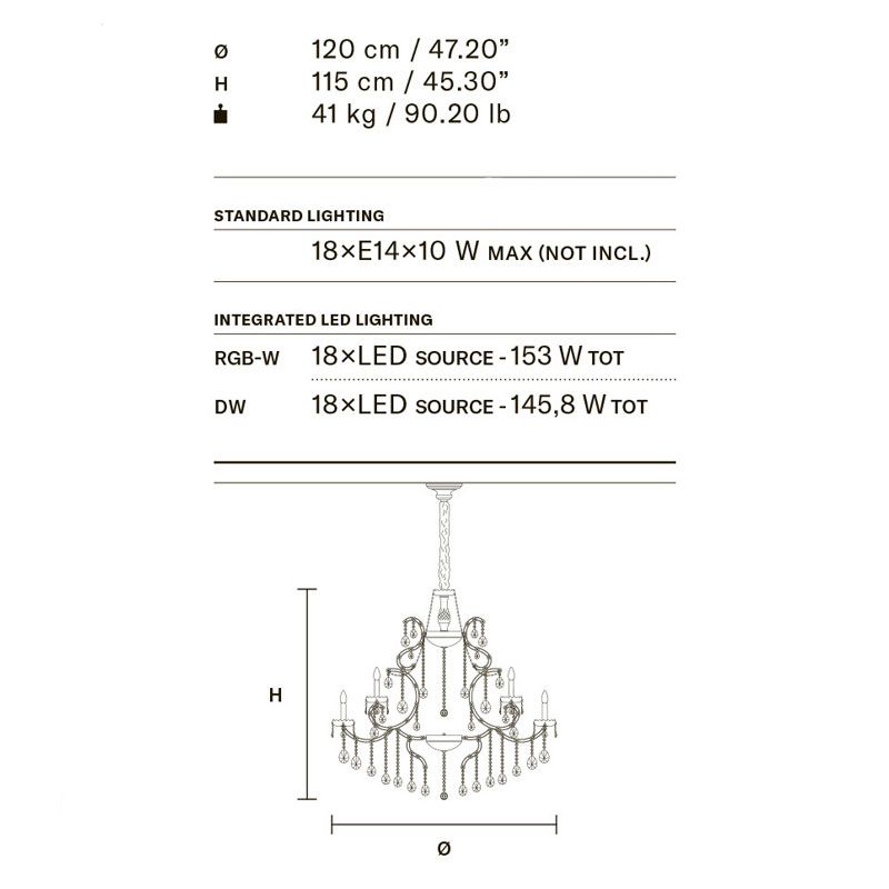 Древний режим - это тенденция, выбранная для Aqaba, произведения искусства, сотканного из света и отличающегося неоспоримой элегантностью и великолепием. Благодаря хрустальным гирляндам Aqaba напоминает о венецианском великолепии эпохи, которой восхищались во всем мире.