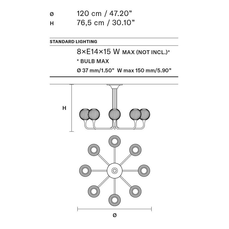 Tee indoor - это исследовательский дизайн, балансирующий между строгостью и элегантностью, эстетически выделяющийся своей изогнутой формой. Световые сферы оживают благодаря контурам, отражающим волнистую природу света, соединенные на органических стеблях, напоминающих грациозность цветка каллы.