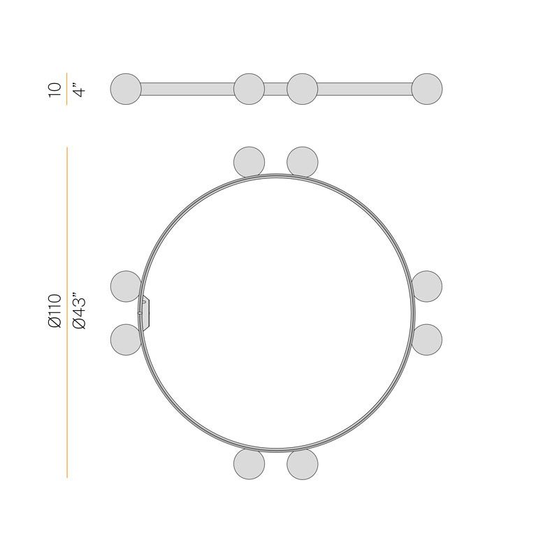 Продолжение серии Murano модель круглых композиций из светящихся сфер - Murano R. Кольца доступны в двух размерах, с внешним диаметром 80 см или 110 см, и они позволяют создавать вертикальные конфигурации из нескольких подвесок. Кольцо изготовлено из экструдированного алюминия с отделкой цвета шампанского или сатинированного черного цвета. Сферические диффузоры из прозрачного бронзового выдувного стекла. Аксессуары для питания и подвешивания заказываются отдельно и включают в себя навес, кабель питания, стальные тросы с приспособлениями для крепления к потолку. Для укладки большего количества элементов необходимо заказать дополнительное вспомогательное оборудование, включающее силовой кабель и стальные тросы. Возможность создания нестандартных композиций с увеличенным количеством колец.
