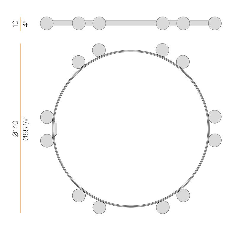 Продолжение серии Murano модель круглых композиций из светящихся сфер - Murano R. Кольца доступны в двух размерах, с внешним диаметром 80 см или 110 см, и они позволяют создавать вертикальные конфигурации из нескольких подвесок. Кольцо изготовлено из экструдированного алюминия с отделкой цвета шампанского или сатинированного черного цвета. Сферические диффузоры из прозрачного бронзового выдувного стекла. Аксессуары для питания и подвешивания заказываются отдельно и включают в себя навес, кабель питания, стальные тросы с приспособлениями для крепления к потолку. Для укладки большего количества элементов необходимо заказать дополнительное вспомогательное оборудование, включающее силовой кабель и стальные тросы. Возможность создания нестандартных композиций с увеличенным количеством колец.
