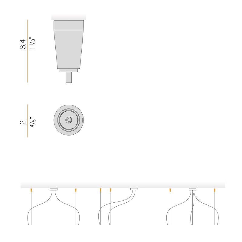 Canopies For Offset - Небольшие круглые крепления без видимых винтов, предназначенные для установки одного, двух или трёх подвесных светильников с питанием от сети. Для подвешивания светильников со смещением относительно точки освещения предусмотрены отводы для подвесных и питающих кабелей.