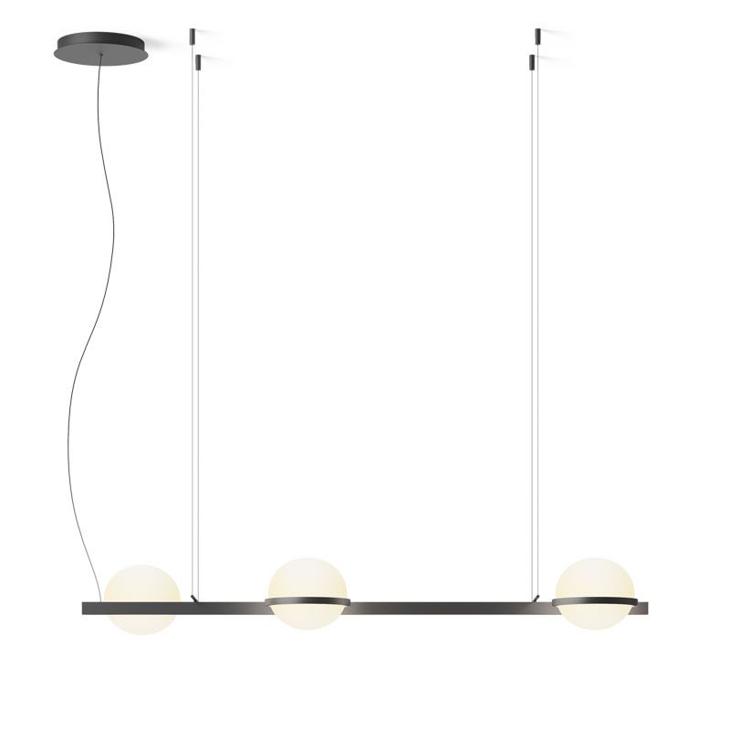 Классический глобус, слегка приплюснутый здесь, эволюционирует в сторону более органичной формы, а подвесная версия с почти незаметной кабельной опорой подчеркивает ощущение парения.