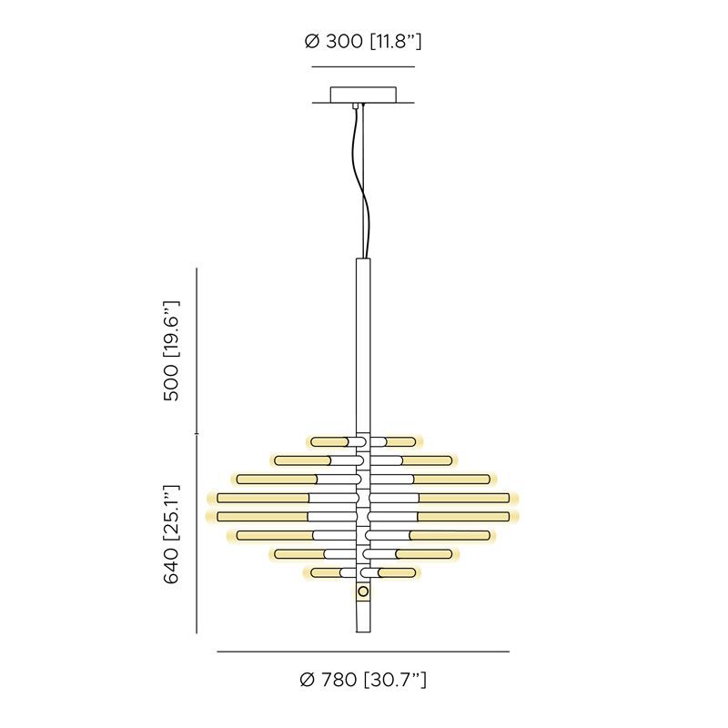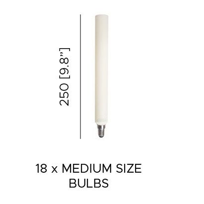 Трубчатые источники света из молочно-белого стекла трех различных размеров были специально разработаны Contardi и оснащены низковольтным цоколем E14 (24 В).
