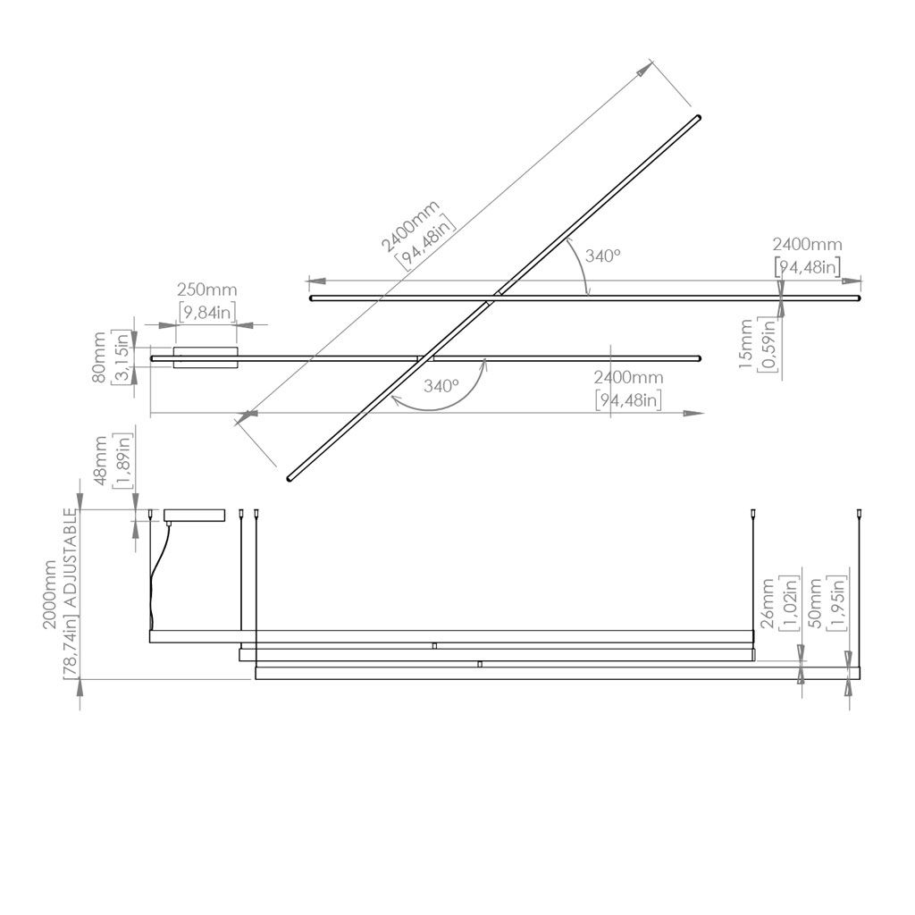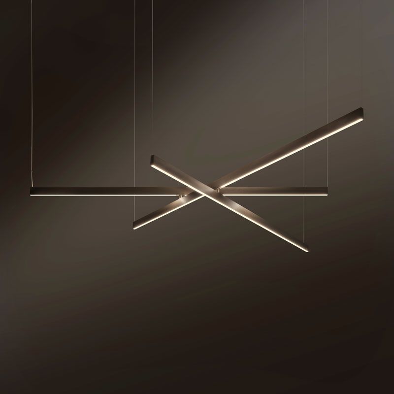 Подвесная версия Fly Multiple позволяет менять ориентацию и положение светильников для создания различных композиций и обеспечивает двойное излучение света (сверху и снизу) для прямого и рассеянного освещения. Светильник крепится к потолку в шести точках с дополнительным креплением для потолочной розетки.