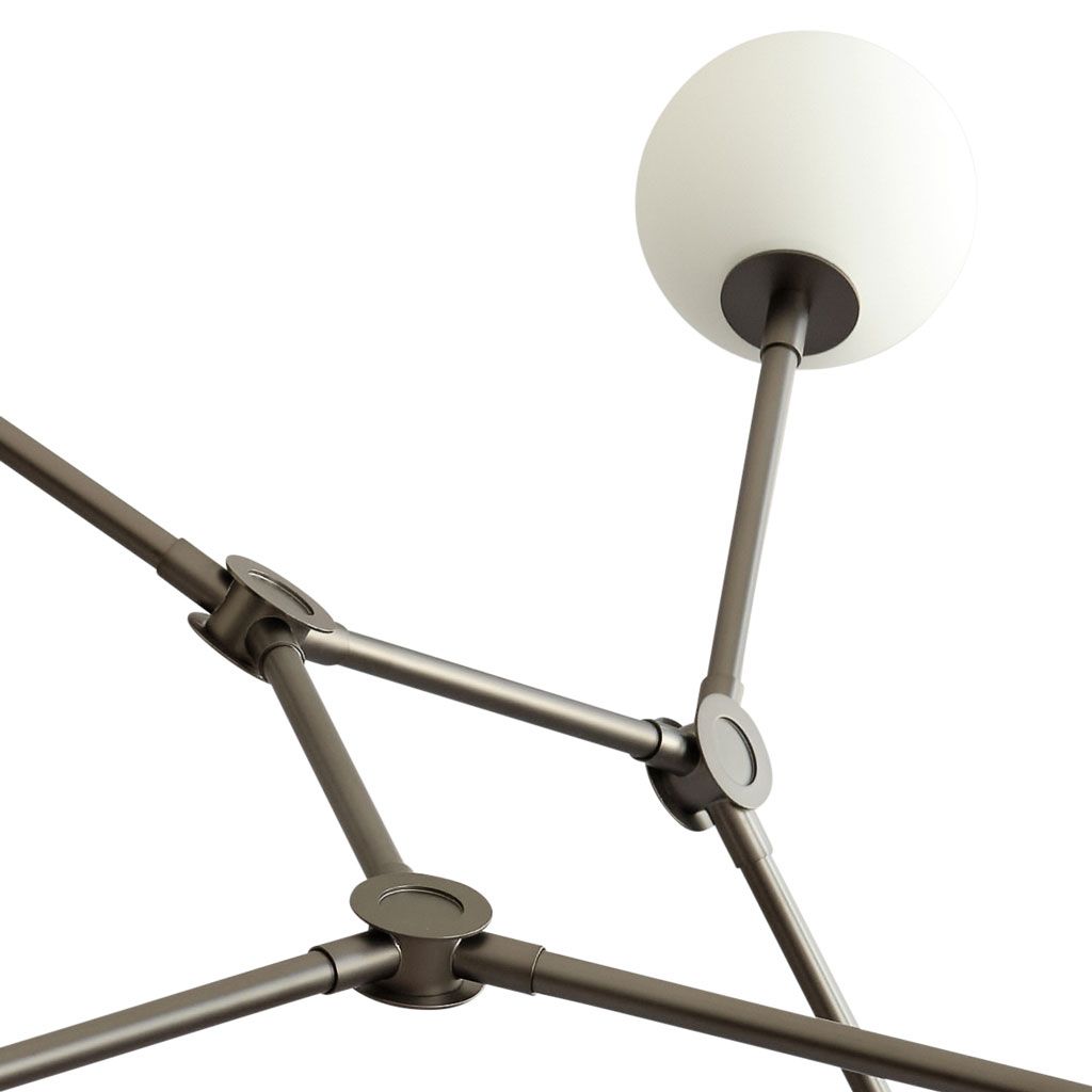 Дизайн определяется чистотой сферических абажуров, которые элегантно контрастируют с изящной, минималистичной металлической конструкцией. Вдохновленная величием люстр ар-деко, люстра Drop Bulb упрощает эту эстетику, отказываясь от витиеватых деталей в пользу чистых линий и сбалансированных пропорций. В результате получилась люстра, которая кажется вневременной, но в то же время современной, где простота подчеркивает элегантность. Металлические кронштейны, деликатно удерживающие каждый стеклянный шар, продуманно расположены для создания гармоничной композиции, позволяя люстре служить одновременно функциональным источником света и привлекательным скульптурным элементом. Теплый свет, проникающий сквозь матовое стекло, создает мягкое, рассеянное сияние, идеально подходящее для создания уютной атмосферы в гостиных, столовых или открытых интерьерах.