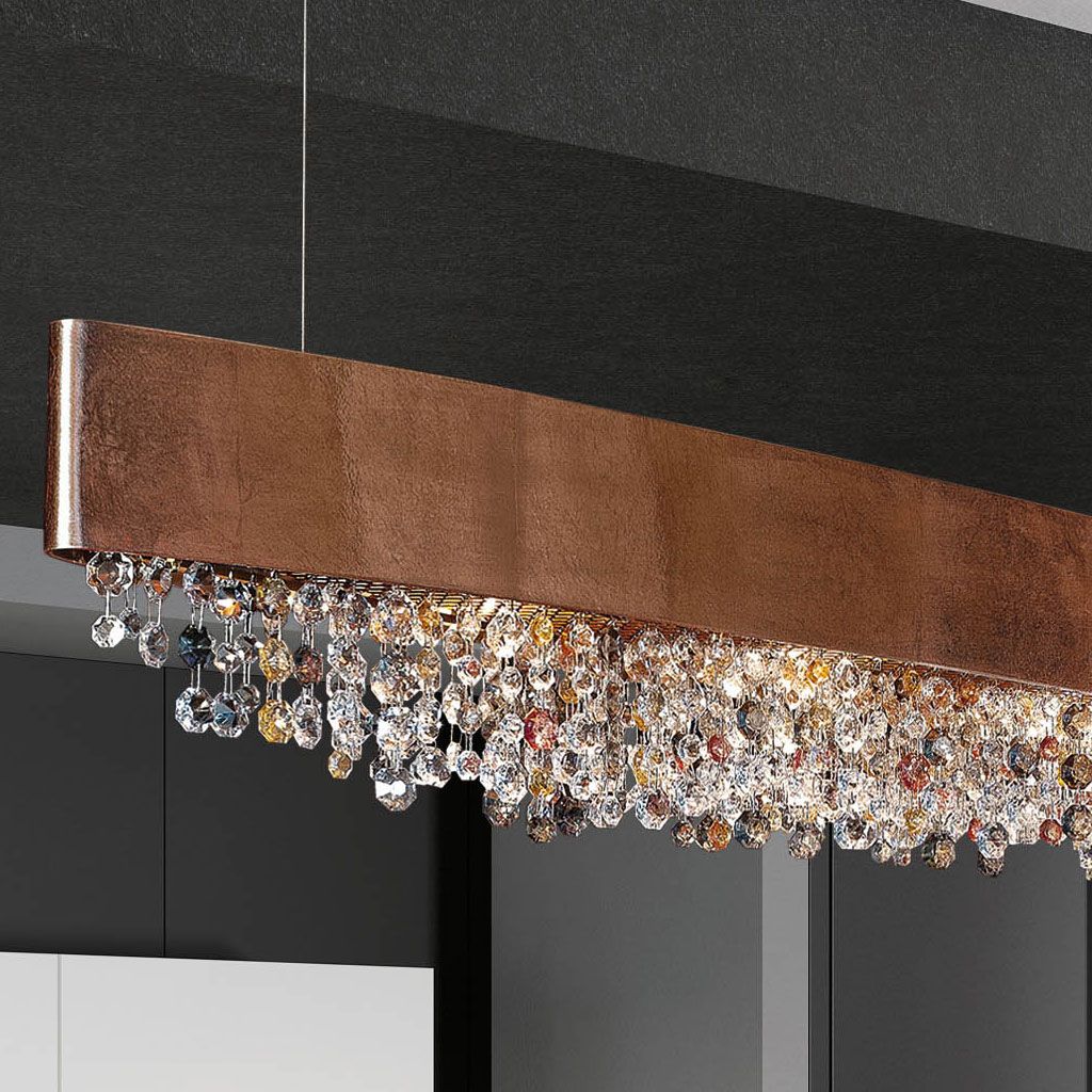 Уникальное дизайнерское решение, созданное в результате синтеза опыта и творчества. Разработанные более десяти лет назад креативным ателье Masiero, светильники Ola, благодаря контрасту между простым металлическим каркасом и роскошным каскадом подвесных светильников, стали иконой Masiero.