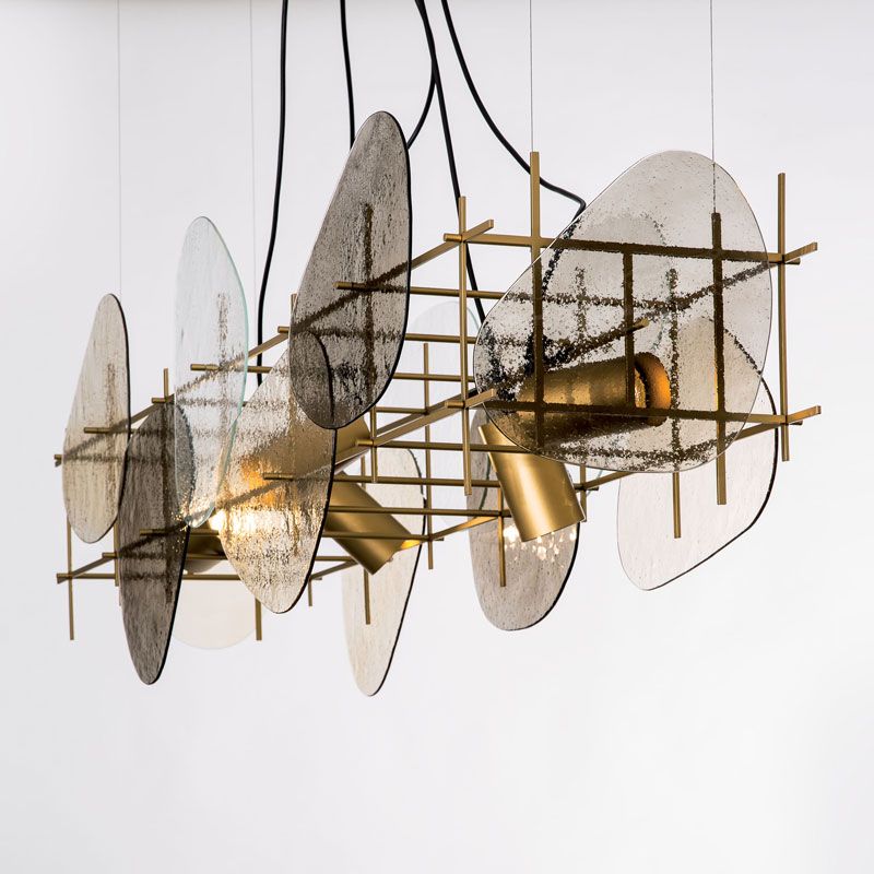 Светильники из коллекции Camouflage состоят из металлической «клетки», которая поддерживает декоративные экраны и сам светильник. Они обладают широкими возможностями индивидуальной настройки благодаря возможности комбинирования стандартных элементов по желанию, а также возможности заказа альтернативных вариантов отделки и размеров. Декоративные экраны доступны в шести вариантах из металла и стекла. Прожекторы GU10 предназначены для установки внутри клетки и направления света по желанию.