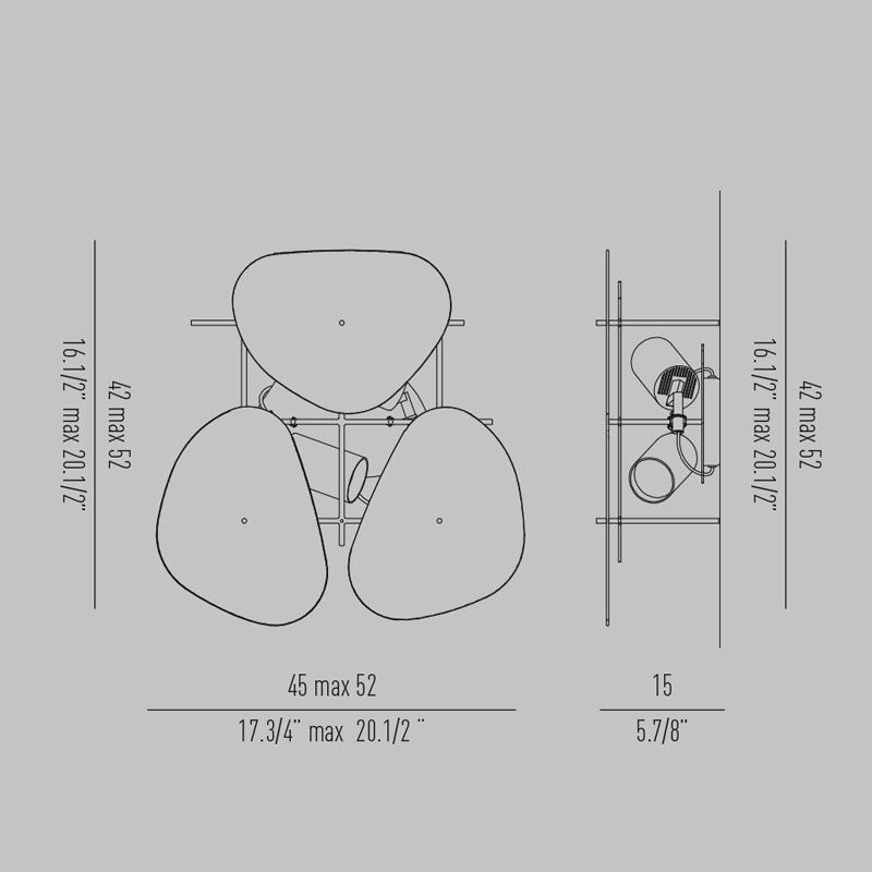 Светильники из коллекции Camouflage состоят из металлической «клетки», которая поддерживает декоративные экраны и сам светильник. Они обладают широкими возможностями индивидуальной настройки благодаря возможности комбинирования стандартных элементов по желанию, а также возможности заказа альтернативных вариантов отделки и размеров. Декоративные экраны доступны в шести вариантах из металла и стекла. Прожекторы GU10 предназначены для установки внутри клетки и направления света по желанию.