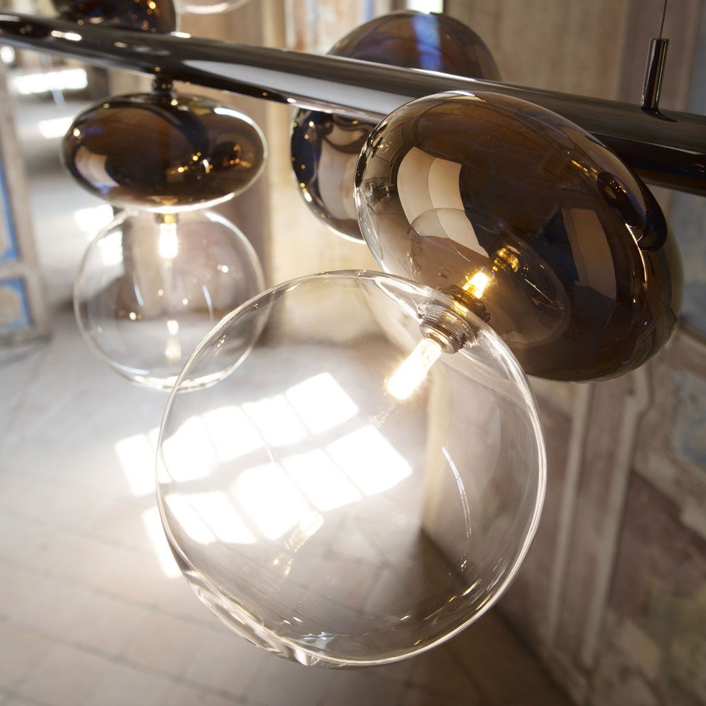 Эллипс из бронзированного боросиликатного стекла, сфера из прозрачного боросиликатного стекла и глянцевого черного хромированного металла.