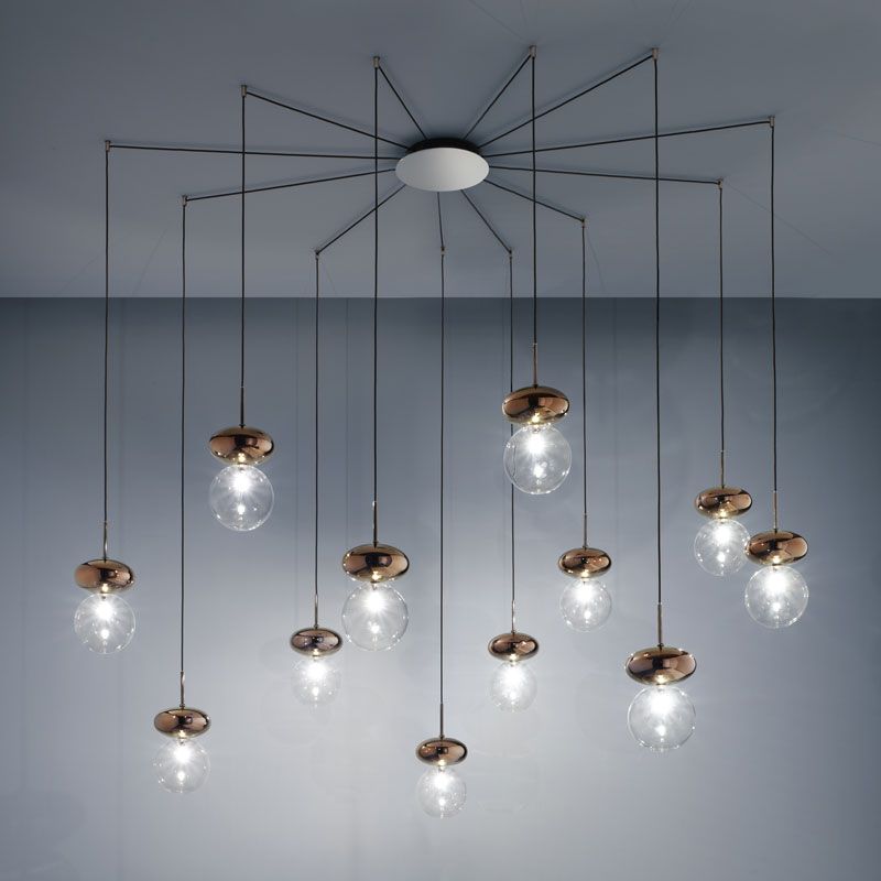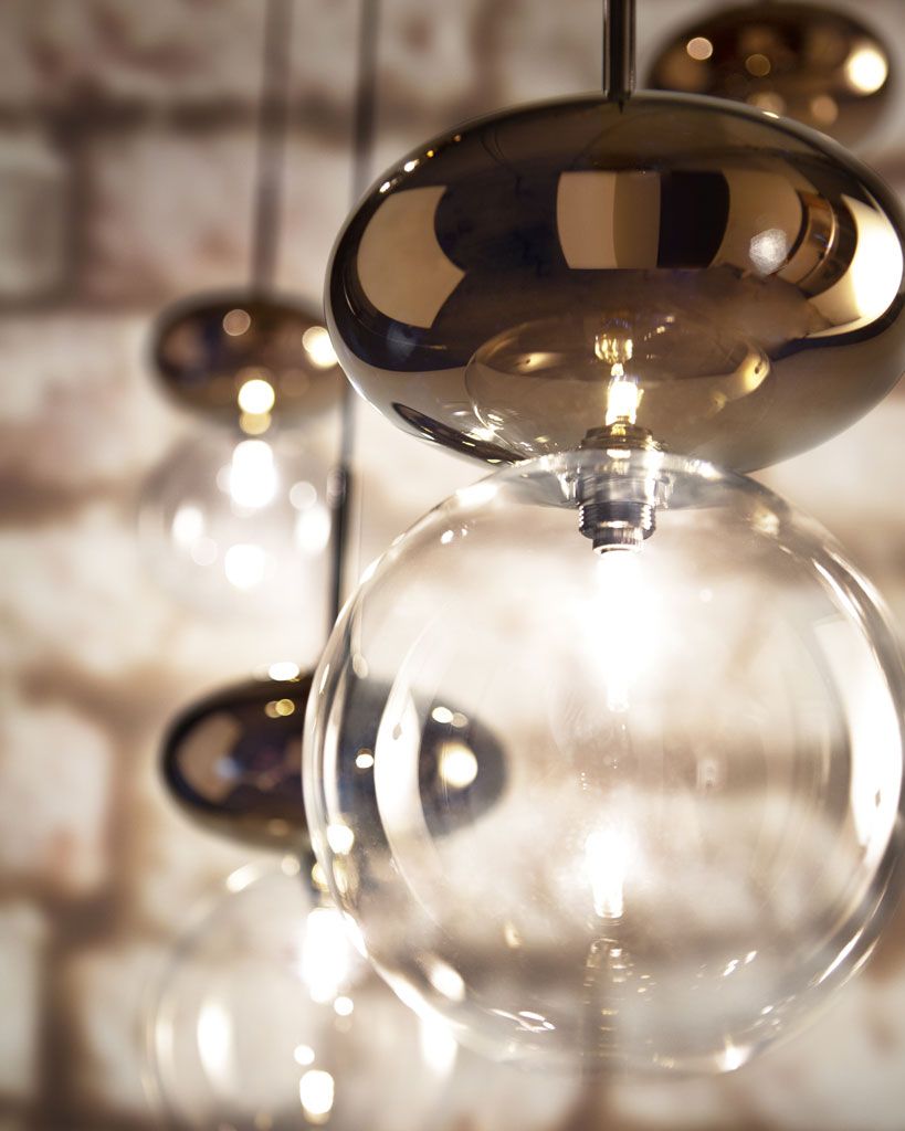Эллипс из бронзированного боросиликатного стекла, сфера из прозрачного боросиликатного стекла и глянцевого черного хромированного металла.