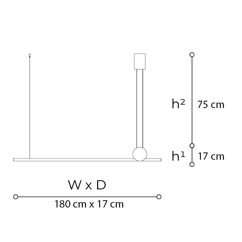 Лаконичный металлический профиль формирует чёткую архитектурную линию, вдоль которой интегрирован источник света — LED-матрица мощностью 24W, обеспечивающая мягкое равномерное освещение. Композицию дополняет акцентный элемент — шар из натурального мрамора Calacatta или Black Marquinia, придающий светильнику глубину и материальность.