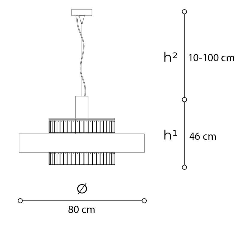 Центральный элемент — конструкция из металла с отделкой сатинированное золото или хром, которая служит оправой для подвесов из матового травленого стекла. Эти стеклянные шары, напоминающие древние измерительные приборы, парят вокруг центрального абажура, создавая ощущение движения и цикличности — словно само время отмеряет свои мгновения мягким сиянием.