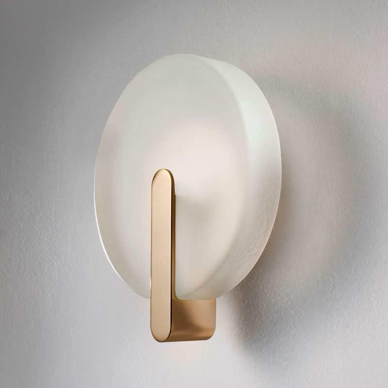 Центральный элемент — утолщённый диск из литого сатинированного стекла, чья важная, почти скульптурная толщина напоминает о магии и поэзии лунного затмения. LED-источник света встроен в стеклянный корпус и, распространяясь по всей его толще, рассеивает сияющую ауру огромного очарования — неуловимый световой диск, который словно парит на стене, невесомый и бесконечно глубокий.