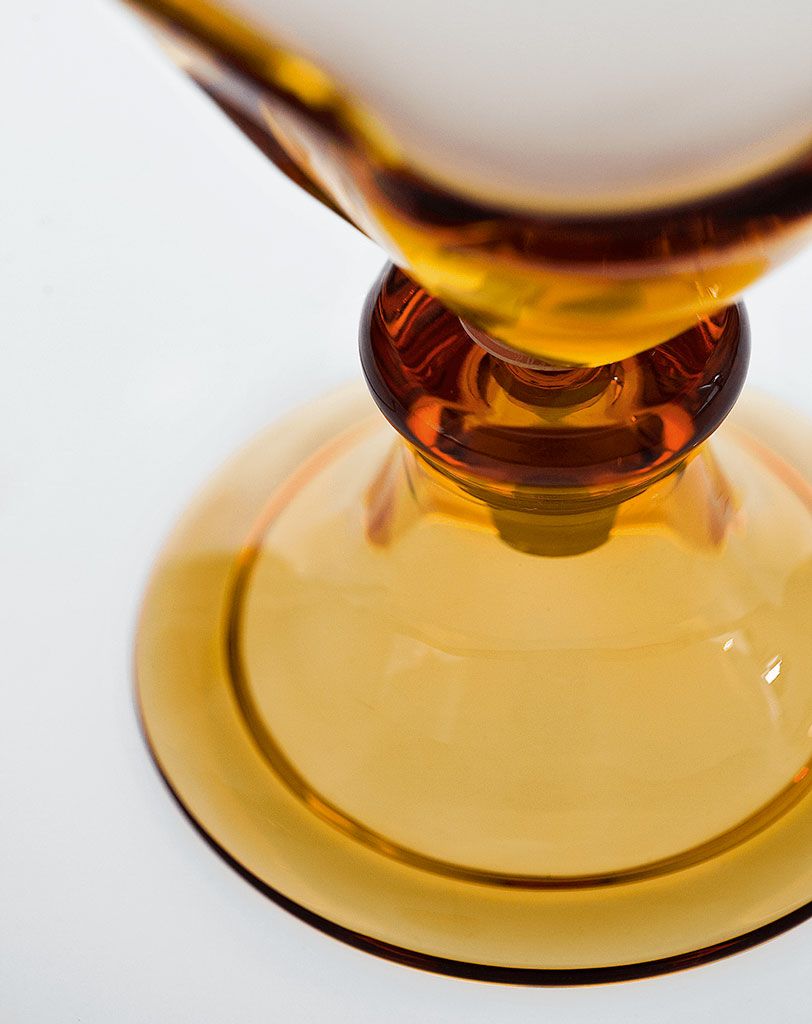 Центральный элемент — основание из резного хрусталя, чья форма отсылает к линии перевёрнутого колокола или изящного бокала. Хрустальная база доступна в двух версиях: прозрачный, тёплый янтарный и и фиолетовый. Прозрачный хрусталь дарит чистоту и лёгкость, янтарный наполняет пространство медовым золотистым свечением, а фиолетовый добавляет интерьеру загадочности, глубины и благородной драматичности.