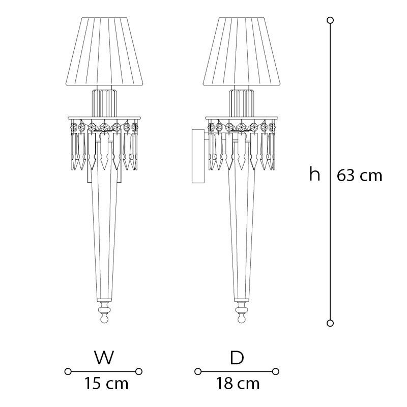 Центральный элемент — трёхуровневая структура из художественного стекла и резного хрусталя, украшенная декором, который словно распускается от источника света, передавая ощущение жизни и полноты. Извилистые линии множатся каскадом, поддерживая современные абажуры из плиссированной ткани цвета айвори. Металлический каркас выполнен в хромированной отделке, а соединительный элемент между ярусами (деталь в виде крюка) имеет благородное покрытие из сатинированного золота, доминирующее над изделием и подчёркивающее его красоту. Маленькие хромированные акценты, напоминающие капли росы, ещё больше обогащают композицию.