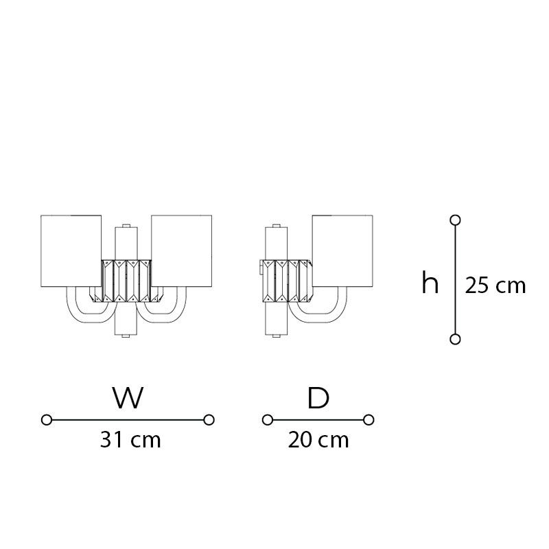 Центральный элемент — ярусная пирамидальная структура, где прозрачные стеклянные «ветви» расходятся от центральной оси, поддерживая тканевые абажуры оттенка песочный хлопок. Каждый ярус обрамлён изящными хрустальными подвесками, которые, словно драгоценные капли, преломляют свет, создавая сложную игру бликов и теней.