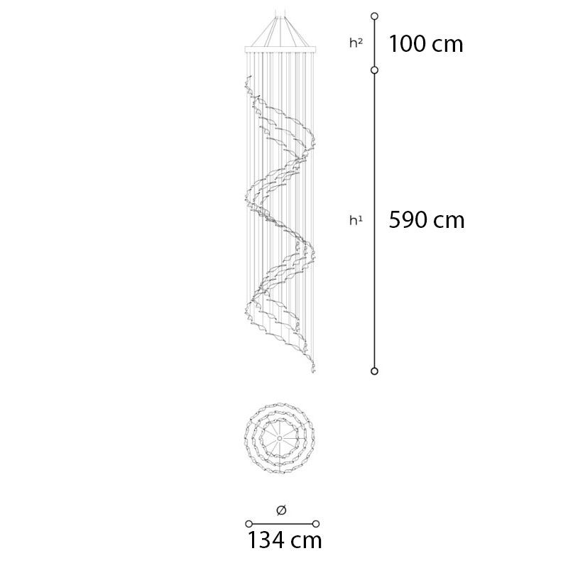 Коллекция предлагает композиции, различающиеся по масштабу и конфигурации, включая внушительную шестиметровую скульптуру из стеклянных элементов, окутанных ветром, с 27 источниками света. Благодаря модульной природе KALEIDO, композиции Neda могут быть адаптированы под любой масштаб и форму пространства — от лаконичных решений до сложных заказных инсталляций для престижных отелей и частных резиденций.