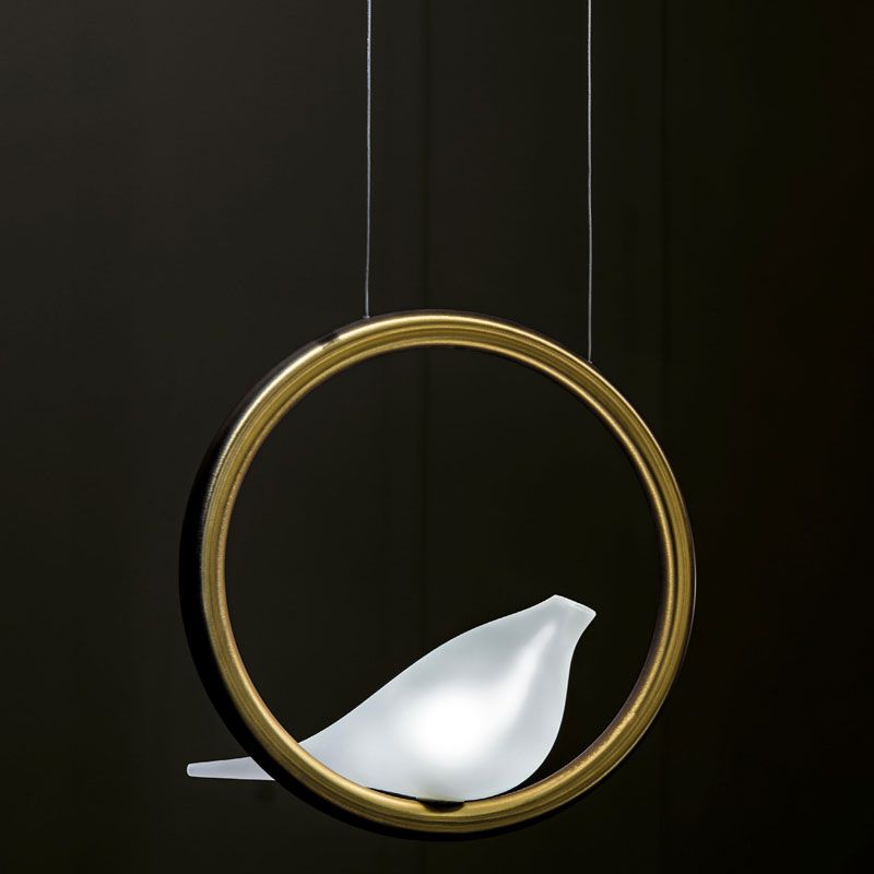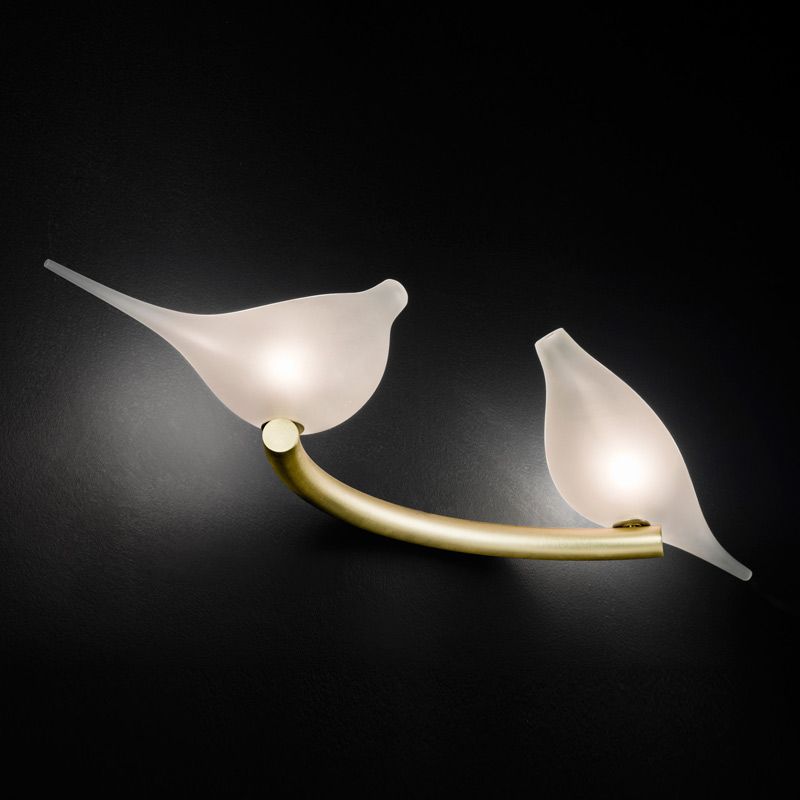 Центральный мотив — стеклянные голуби, парящие в пространстве. Их силуэты символизируют любовь, гармонию и внутреннее спокойствие, превращая светильник в эмоциональный акцент интерьера.